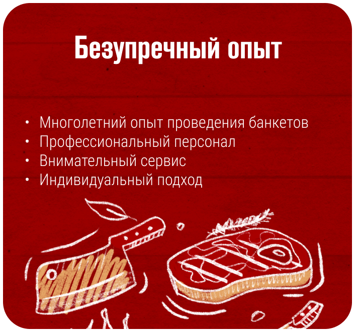 Мы предлагаем специальные пакеты и акции для банкетов, чтобы ваше мероприятие стало по-настоящему незабываемым. Наша команда профессионалов поможет вам создать индивидуальное меню, учтет все ваши пожелания и сделает все возможное, чтобы каждая деталь вашего банкета была идеальной.